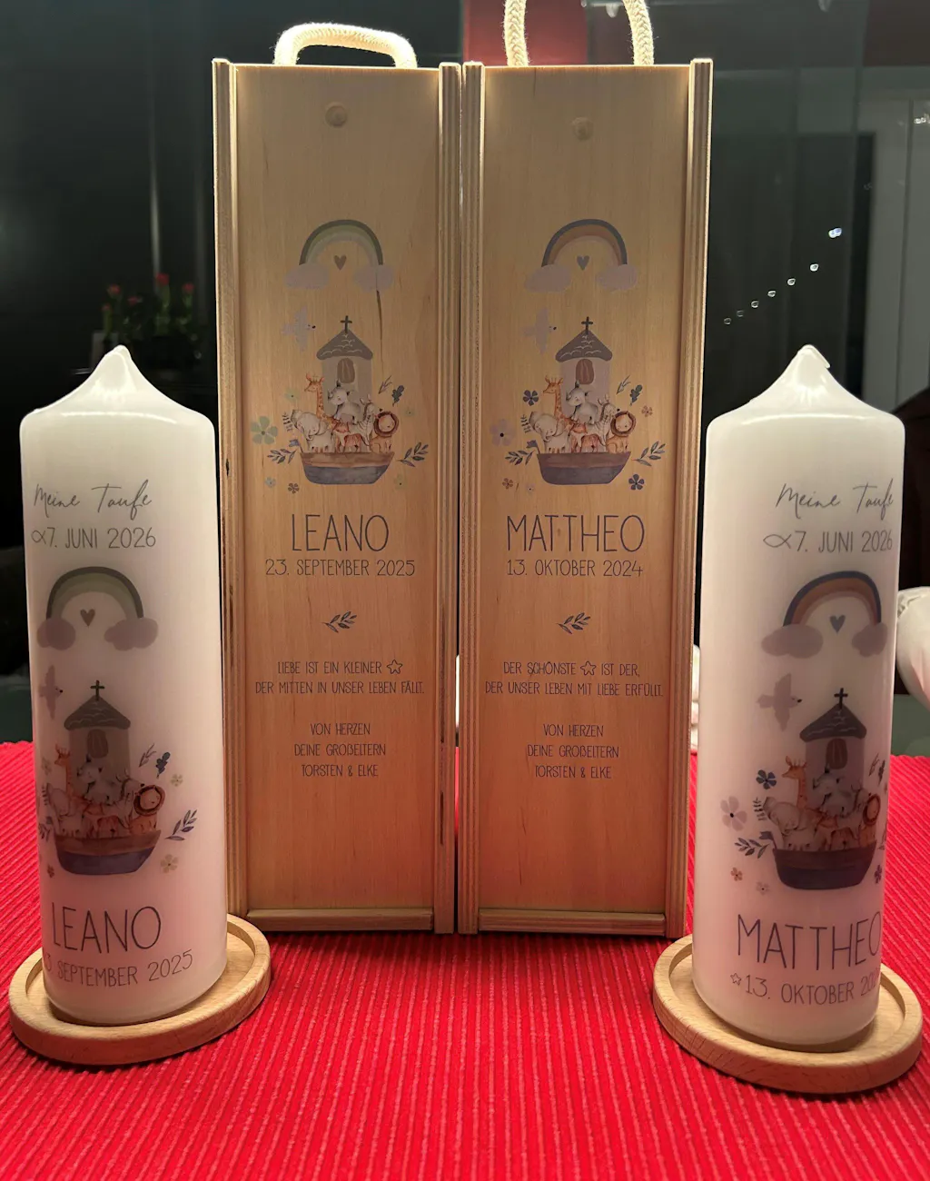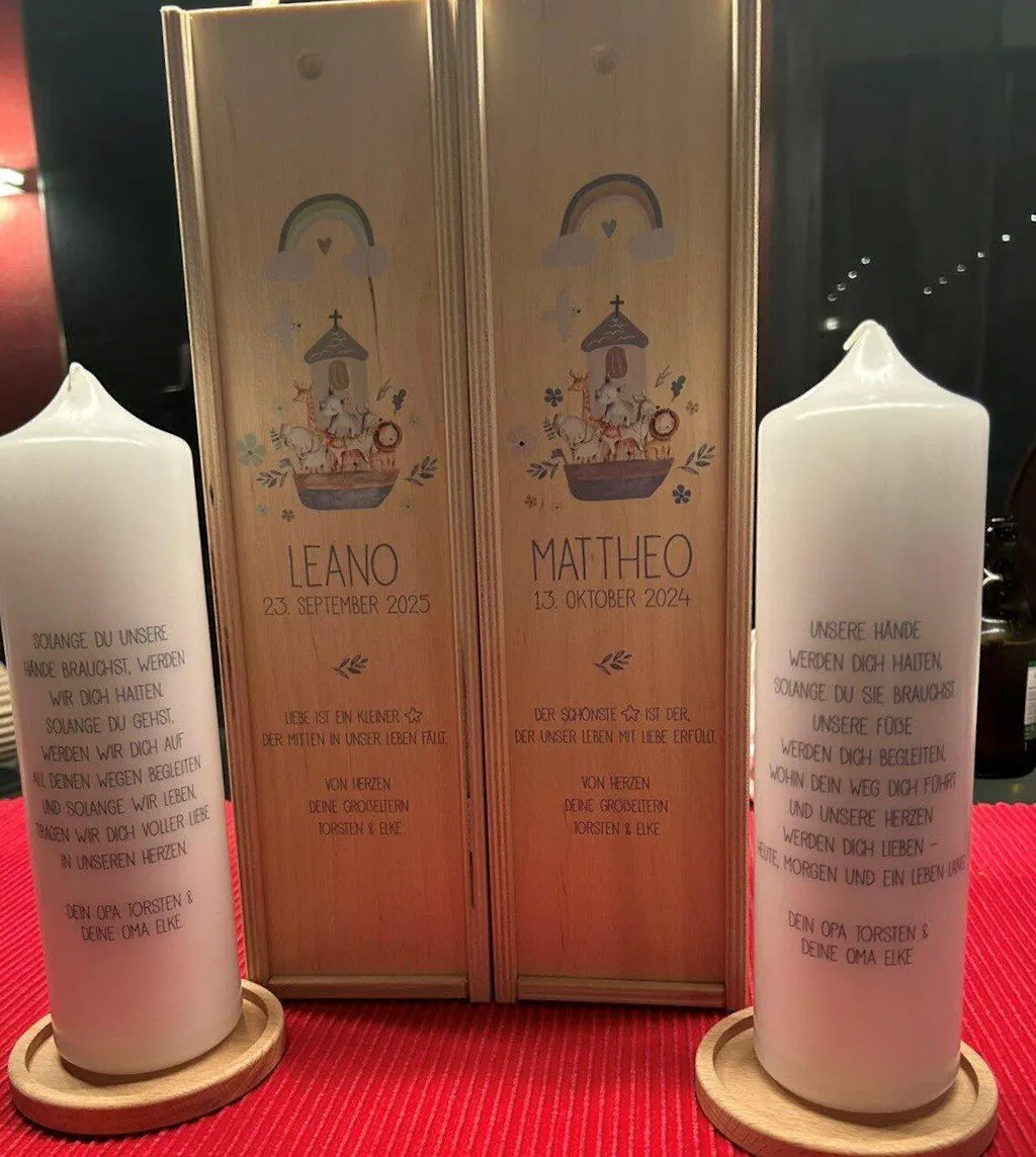 Wir gestalten deine individuelle Kerze ganz nach deinen Wünschen und Vorstellungen. Jede Kerze zur Taufe, Hochzeit, Kommunion oder für die Advents- und Weihnachtszeit macht sich erst auf den Weg zu dir, wenn du glücklich bist und deine Vision vom Kerzenonkel umgesetzt wurde.