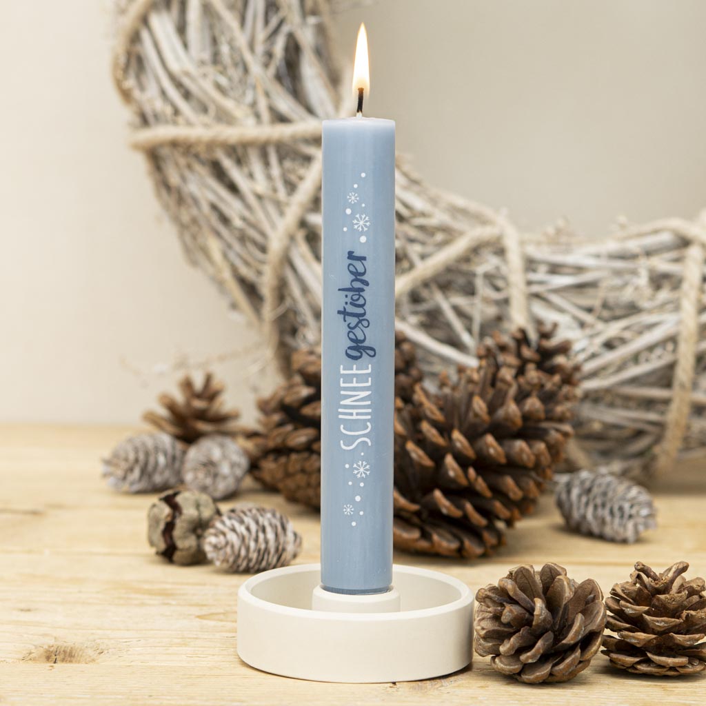 Stabkerze Schneegestber in Blau mit Kerzenhalter