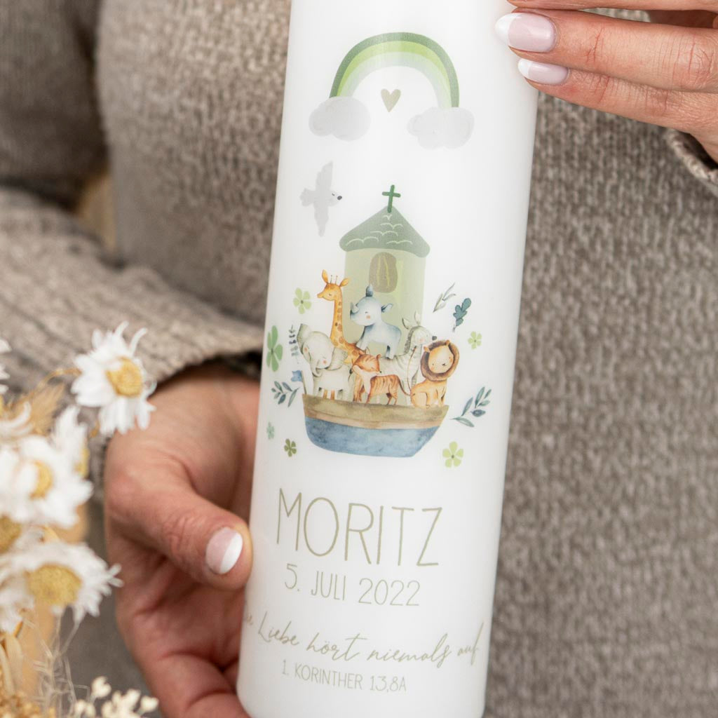Dass unsere Taufkerze Arche – Moritz bei euch so durch die Decke geht, hätten wir damals nicht gedacht. Aber verstehen können wir das absolut! Immerhin hat ein halber Zoo Platz auf der Arche gefunden. Auf diesem Motiv gibt es viel zu entdecken, sodass es niemals langweilig wird - ein großer Spaß nicht nur für Kinderaugen.