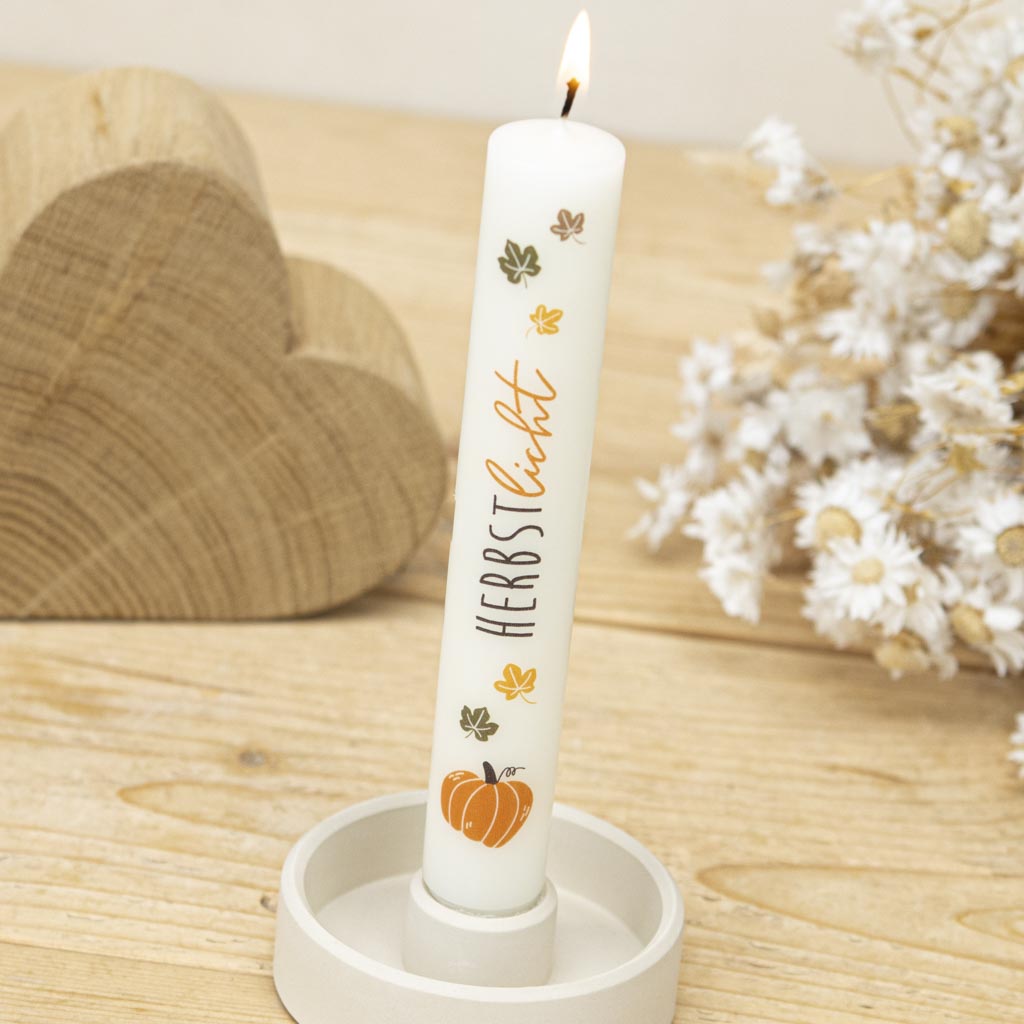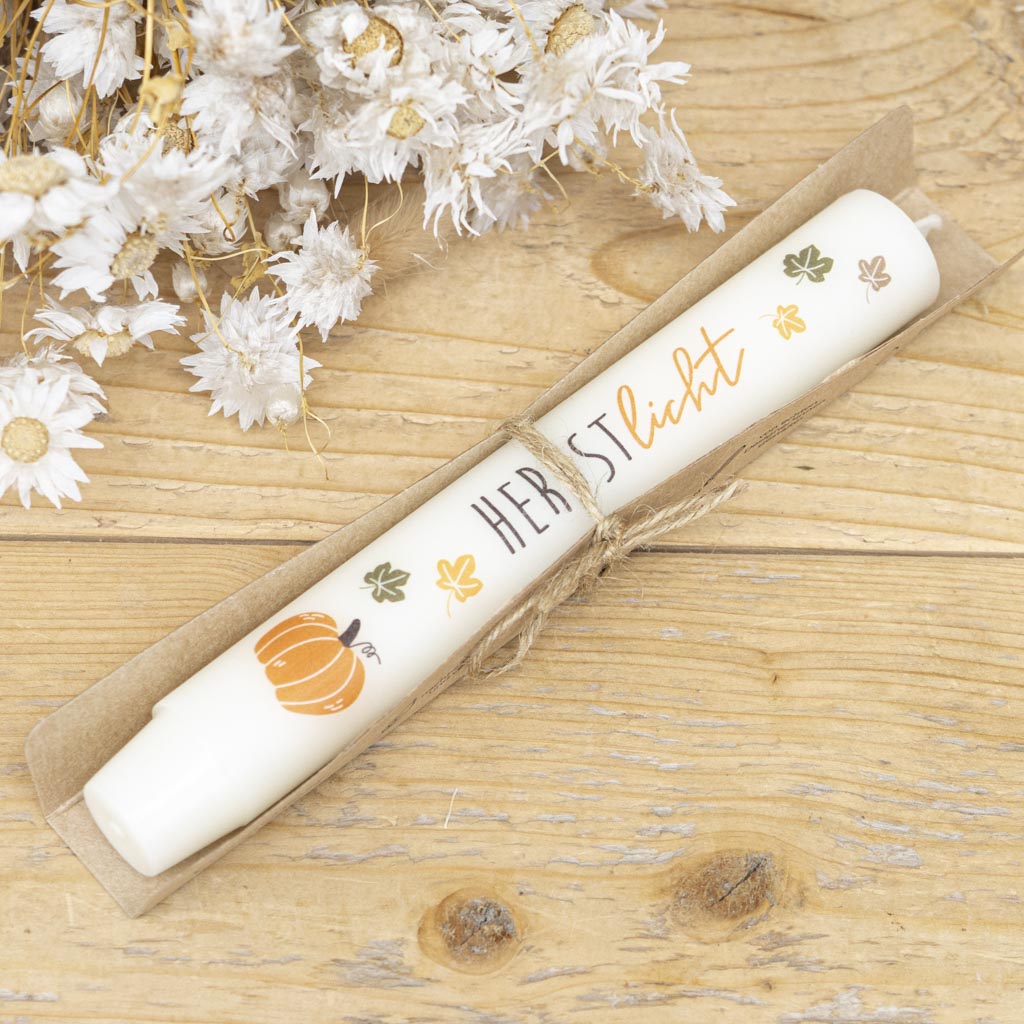 Stabkerze Kürbis für den Herbst mit dem Schriftzug Herbstlicht